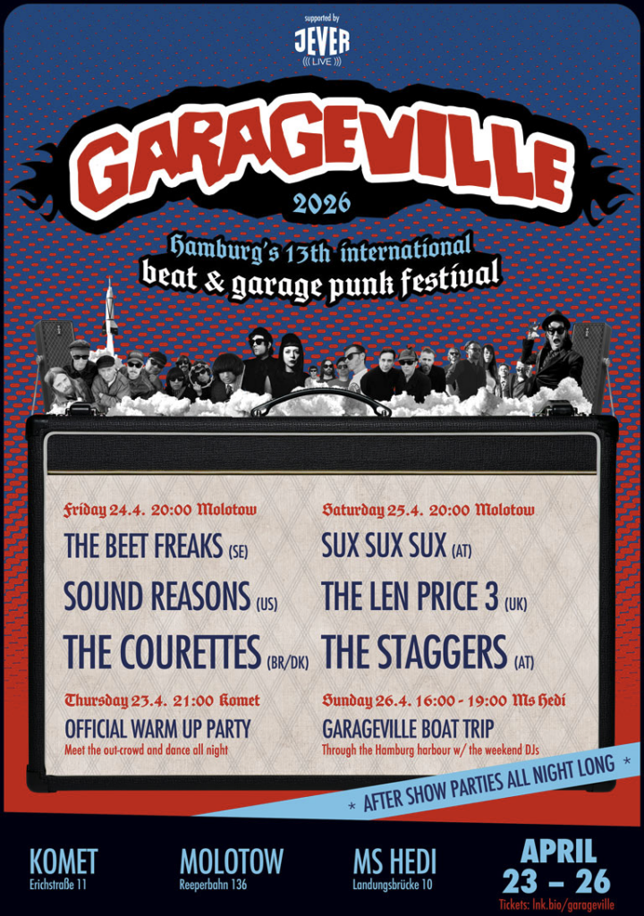Wie Weihnachten und Geburtstag zusammen ist für jeden Fan gepflegter Garage-Musik das jährliche Garageville-Festival in Hamburg. Dieses Jahr vom 23. bis 26. April. Kurz vor dem Festival haben sich die Moderator*innen Kim und Max mit den beiden DJs und Veranstaltern Beat Becker und Fuzzy Trips getroffen für eine gediegene Warmup-Radioshow.